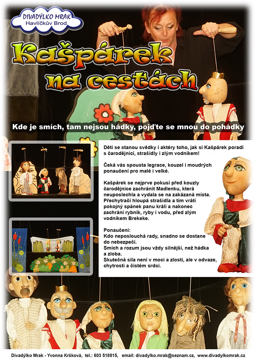 Děti se stanou svědky i aktéry toho, jak si Kašpárek poradí s čarodějnicí, strašidly i zlým vodníkem!